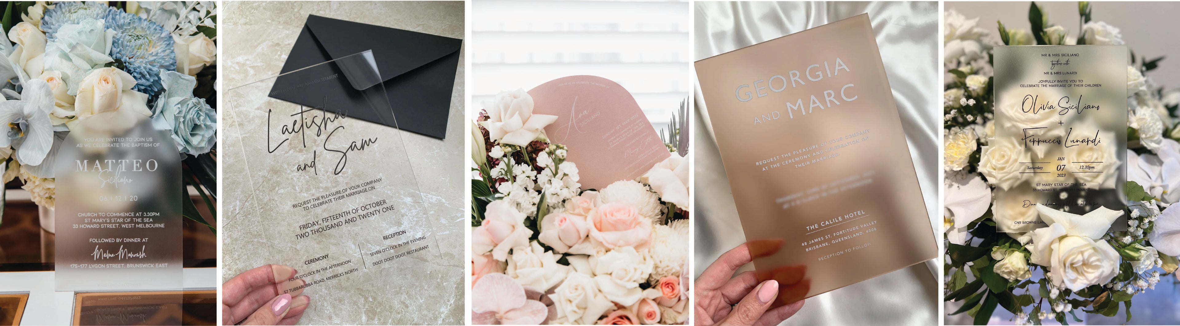 A range of printing methods and materials are available to suit all tastes and budgets, including acrylic, hot foiling, letterpress printing, digital foiling, white ink and digital printing.