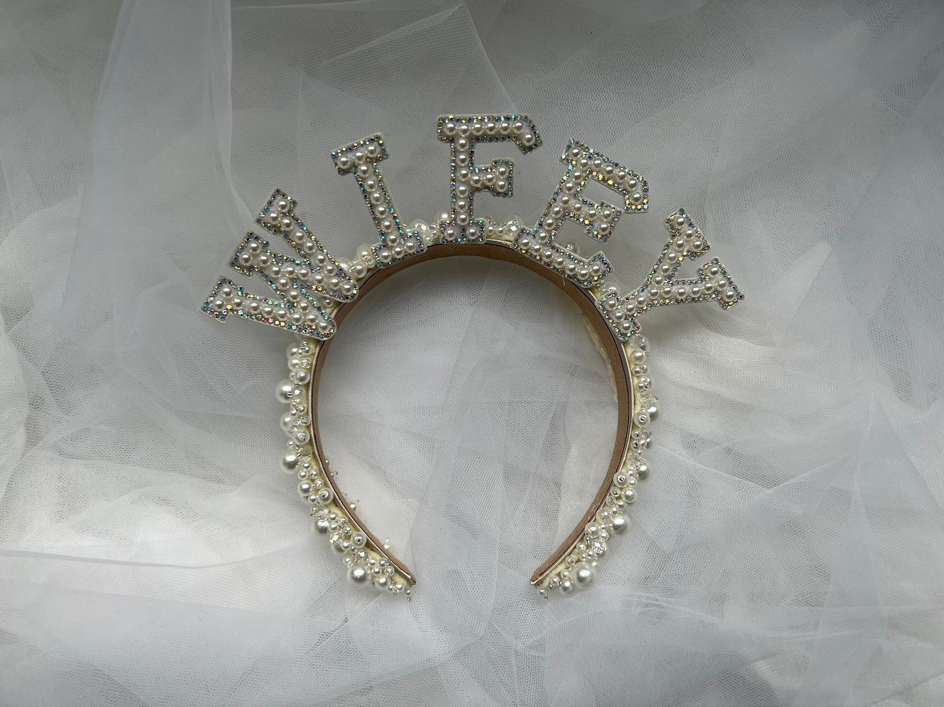 Made from imitation pearl beads with personalised lettering combining pearls and diamontes.