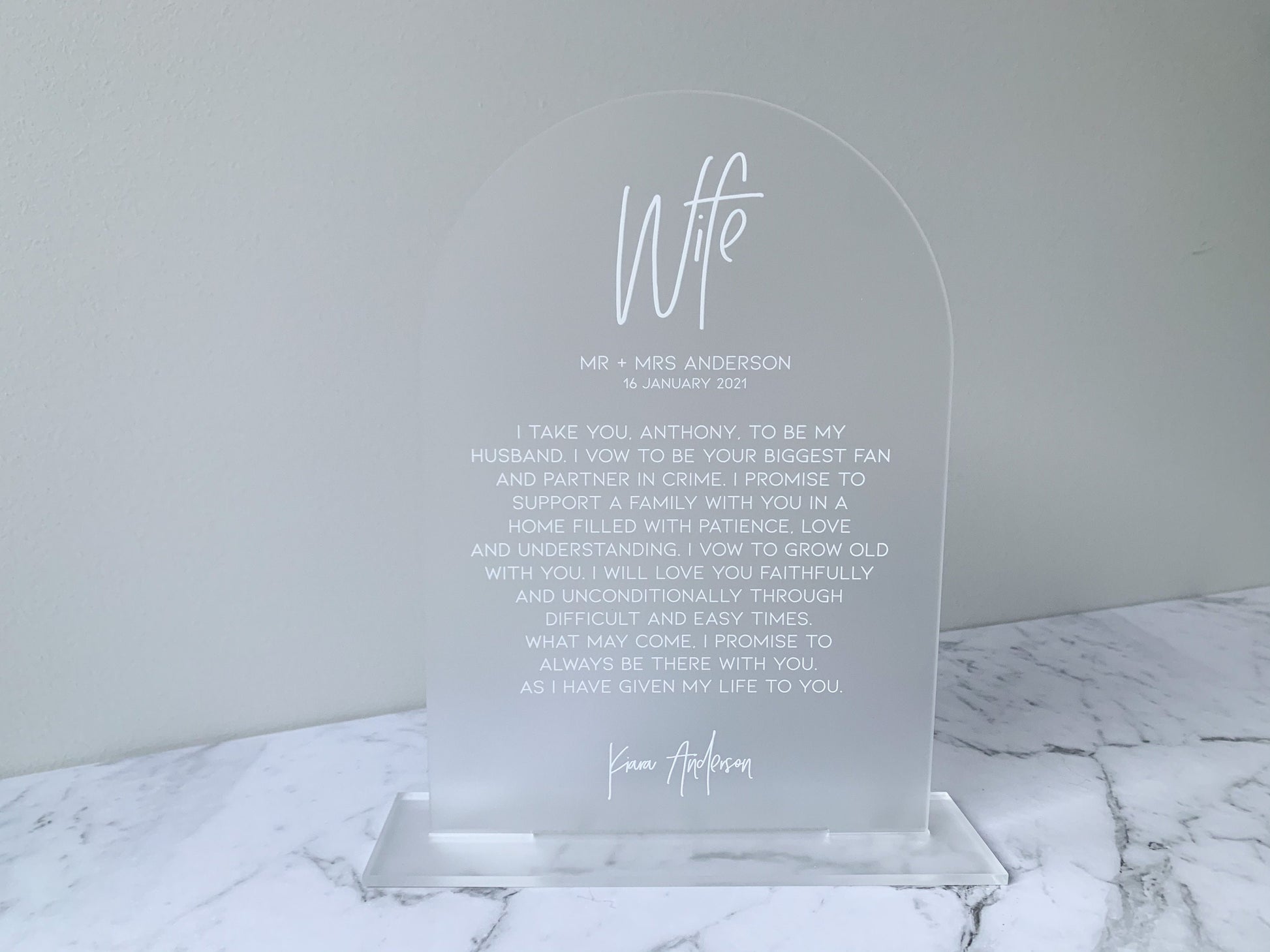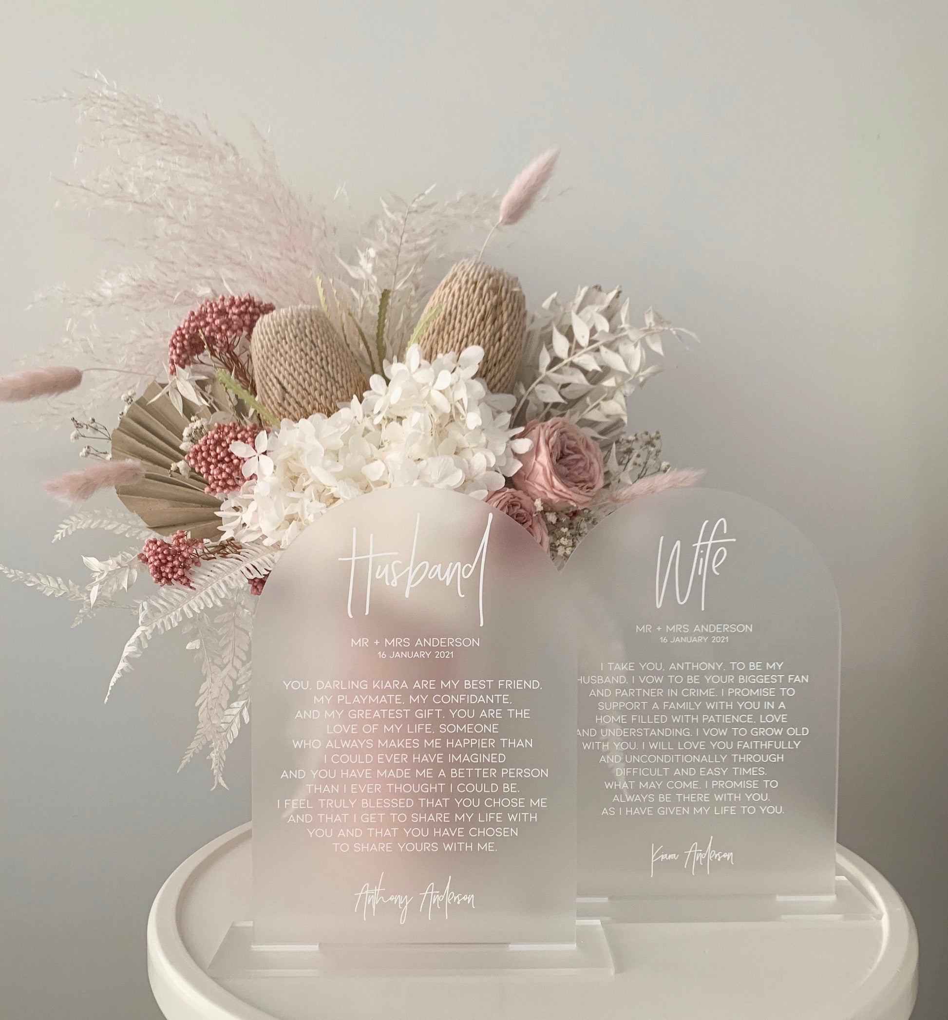 A beautiful keepsake from your wedding day, or to gift your partner for your anniversary. Listing is for two personalised vow signs.