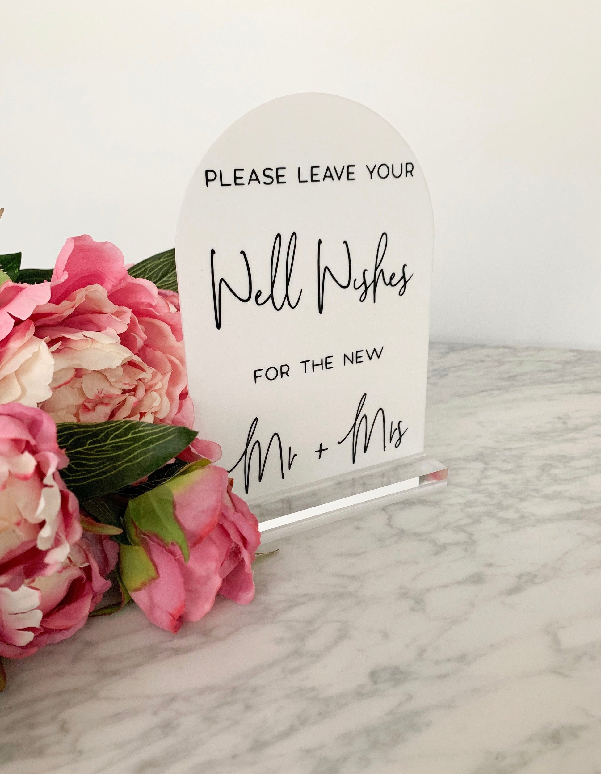 On trend arch shaped Acrylic Sign for your special occasion. Listing is for one sign including clear acrylic block stand.