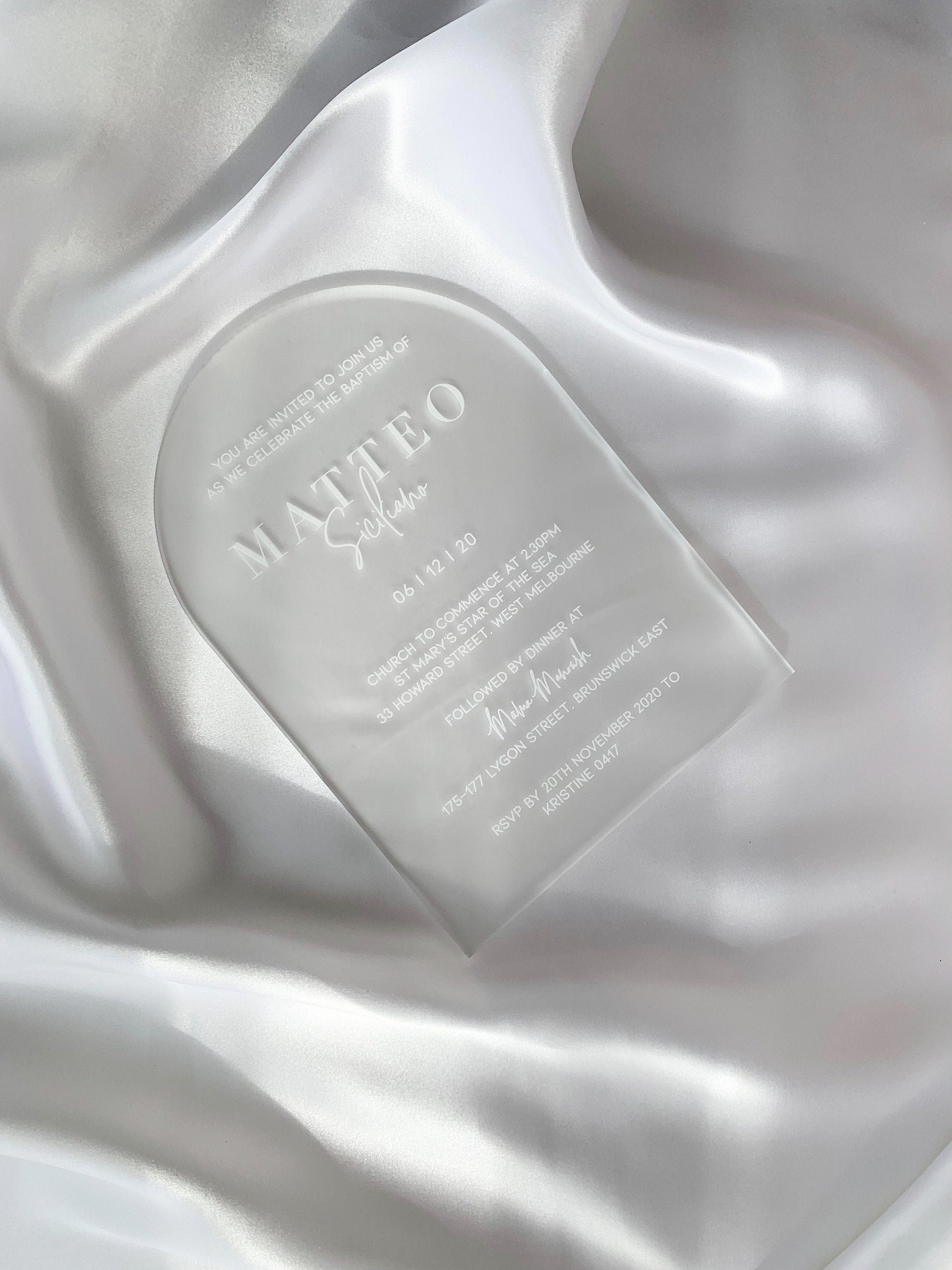 Stand out with an on trend acrylic invitation for your special occasion. All designs are custom made to suit what you are after.
