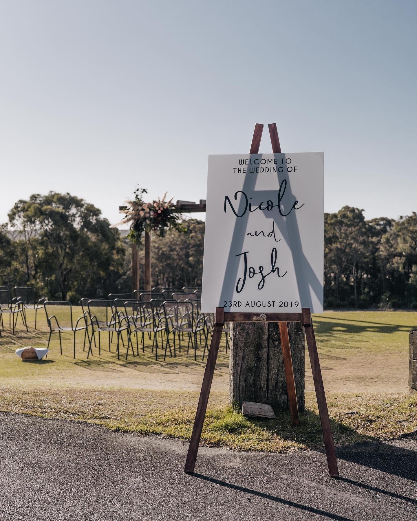 What a beautiful statement piece for your next function adding that personal touch with your unique wording added to the front of the sign. Wording can be with vinyl decal or UV printed.